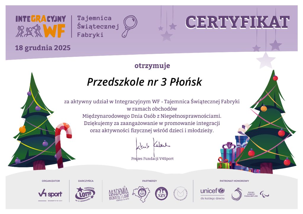 Certyfikat za udział w Integracyjnym WF-ie