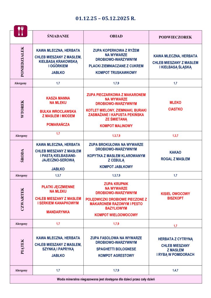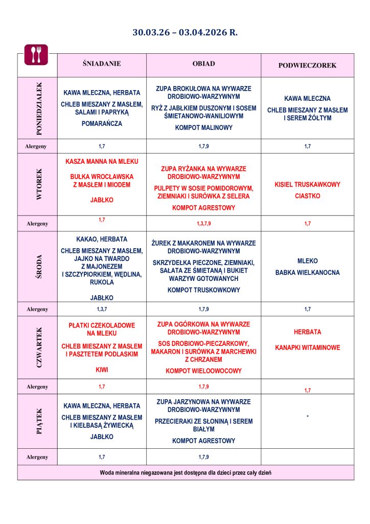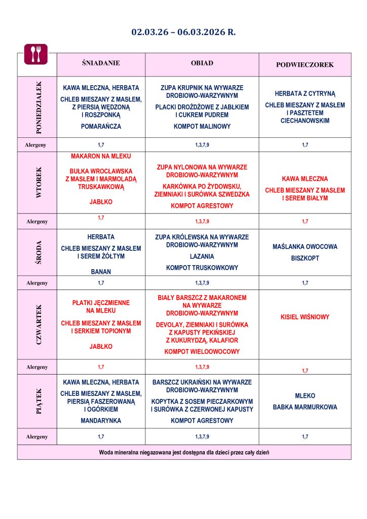Ramowy rozkład dnia